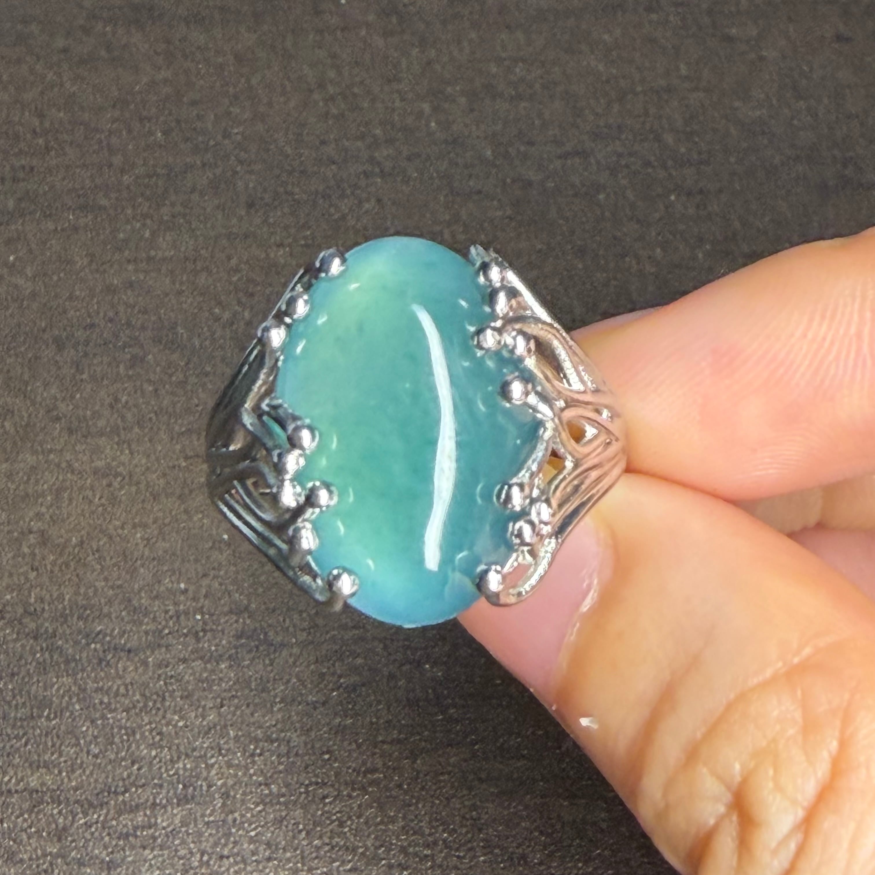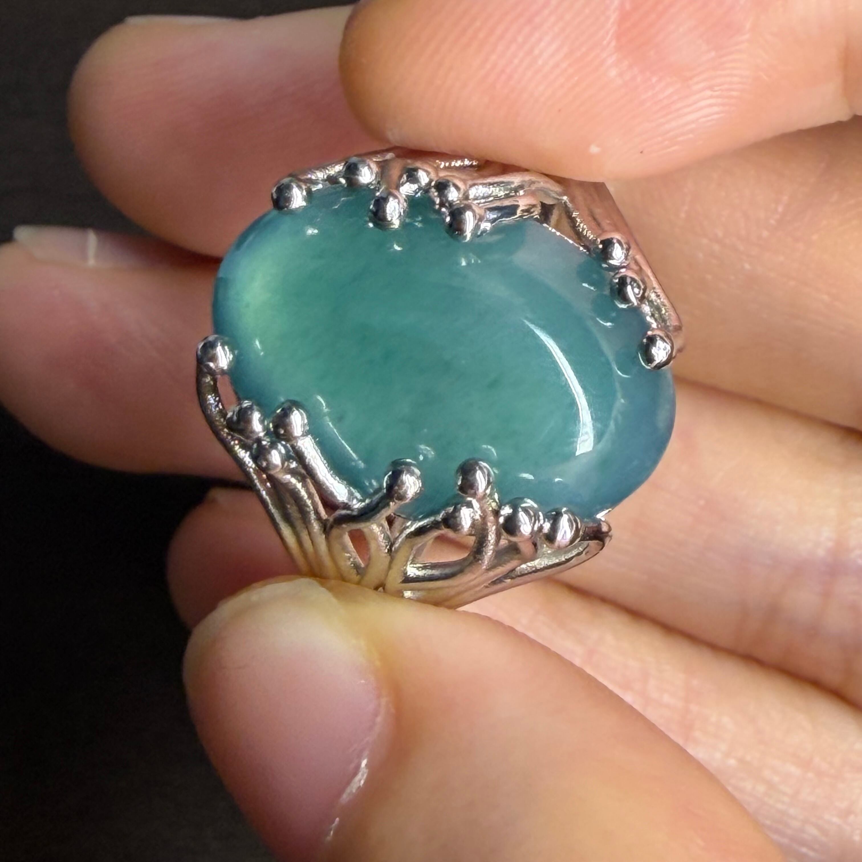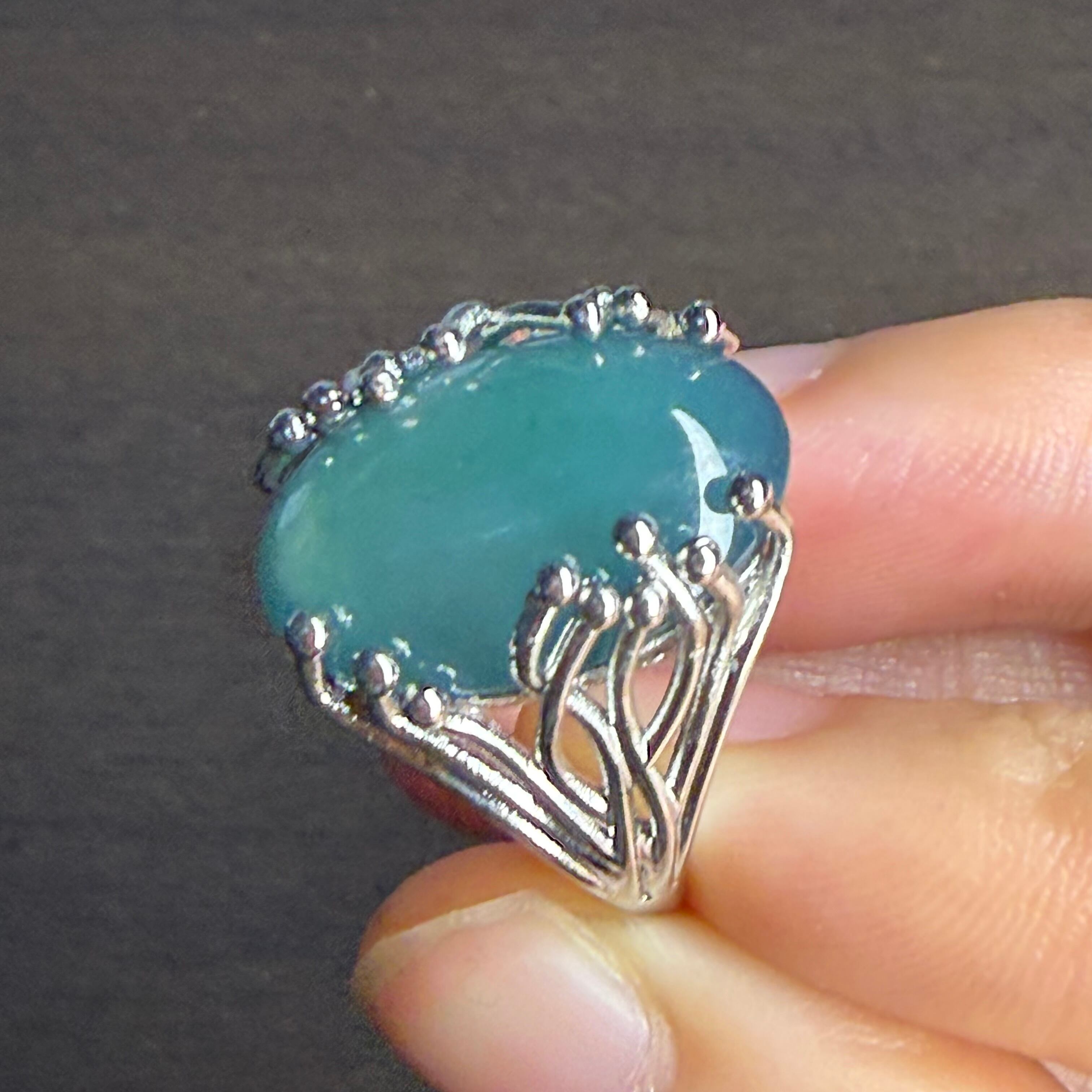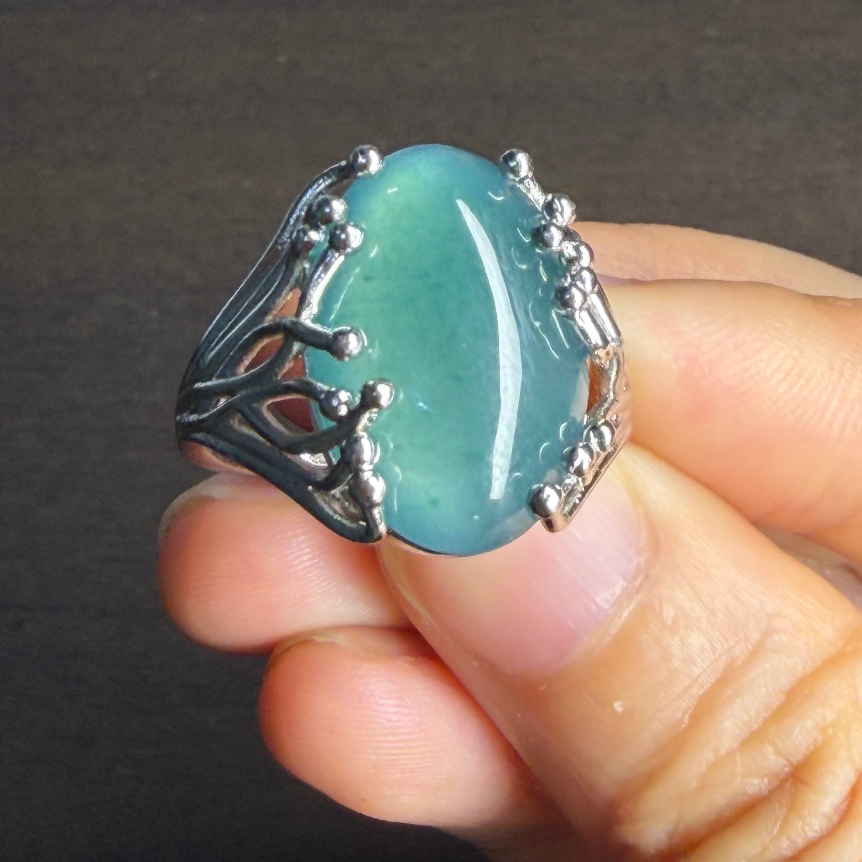 本翡翠指輪 リング 超巨大 無含浸 無着色 一点物 ミャンマー産 深海のような色合い