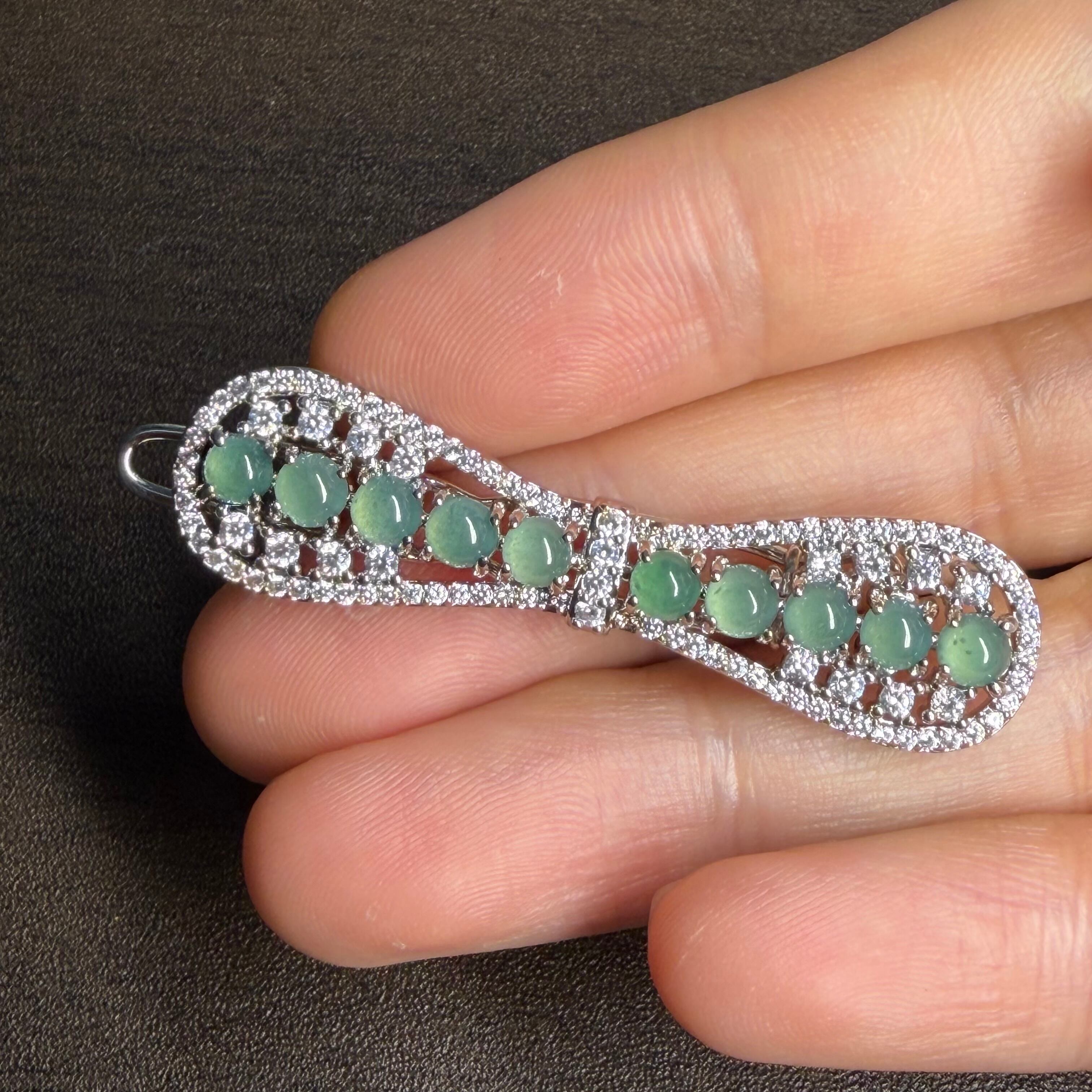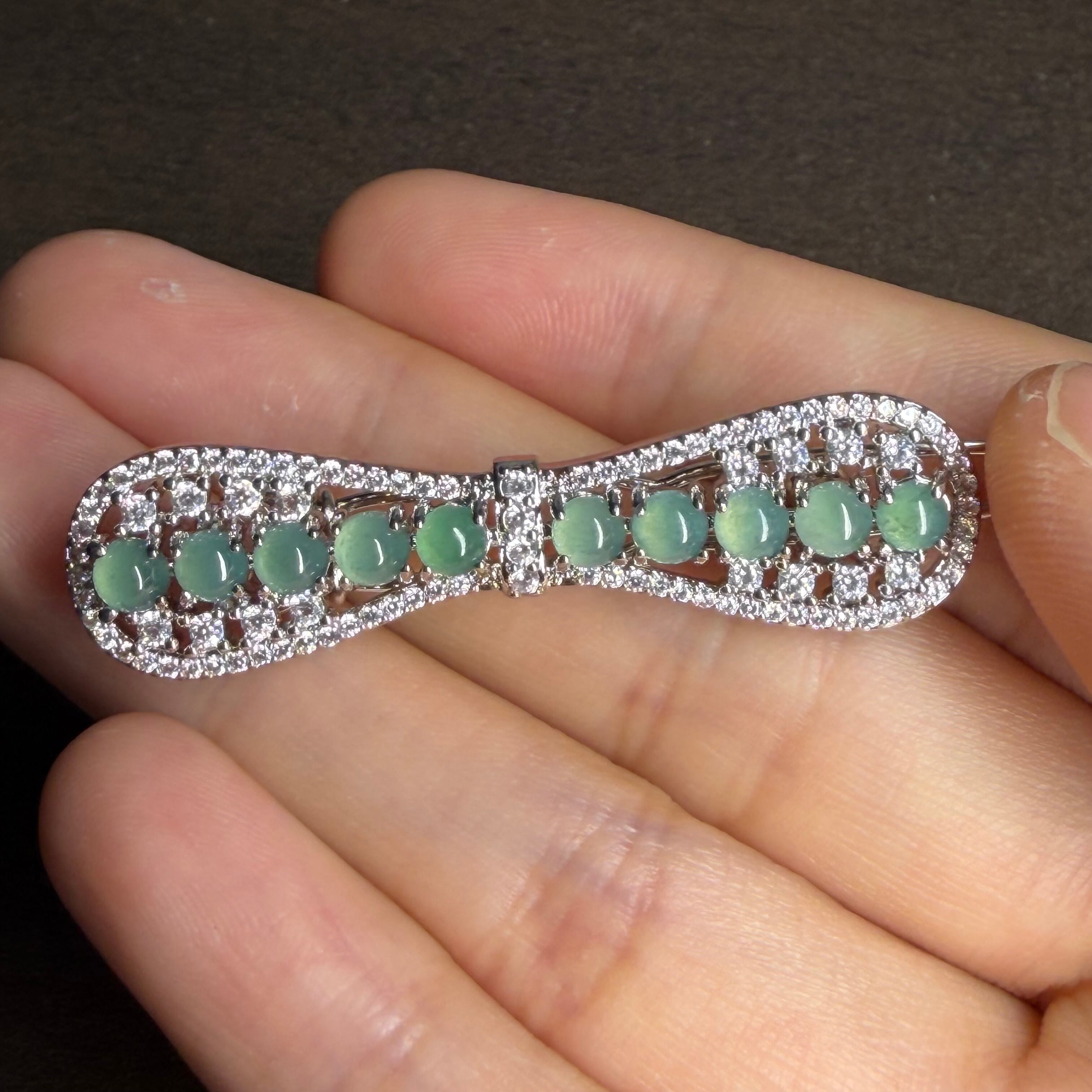 本翡翠のリボン型ヘアピン ミャンマー産 氷種 可愛い おしゃれ