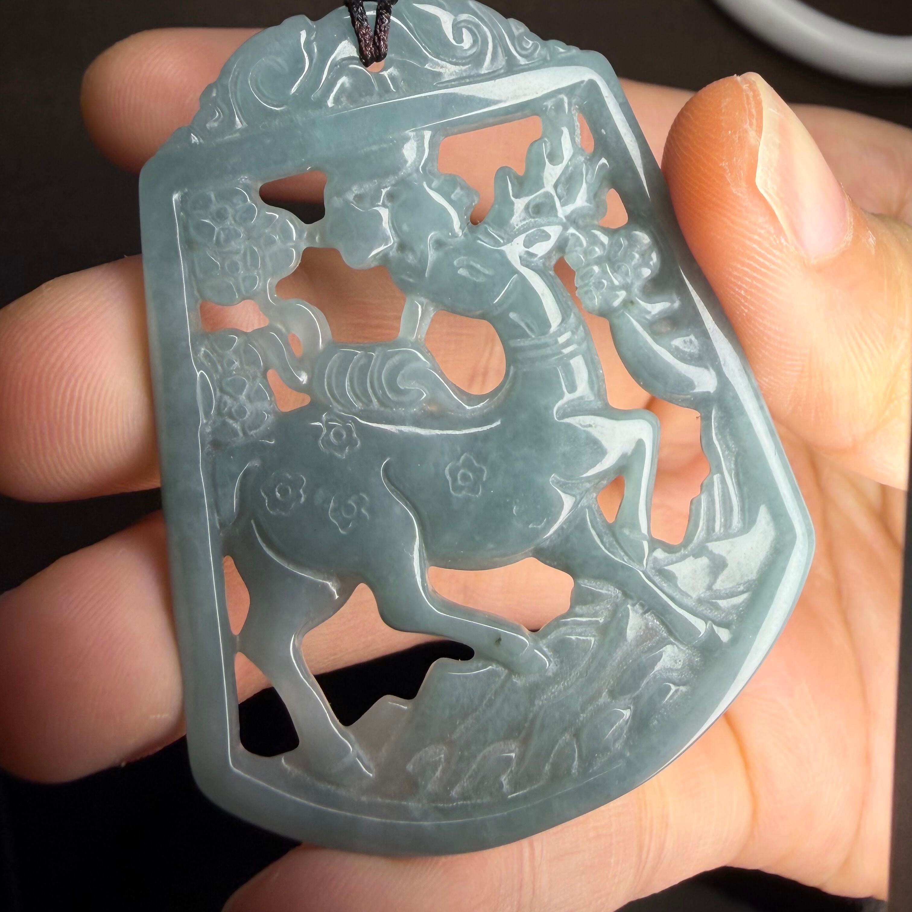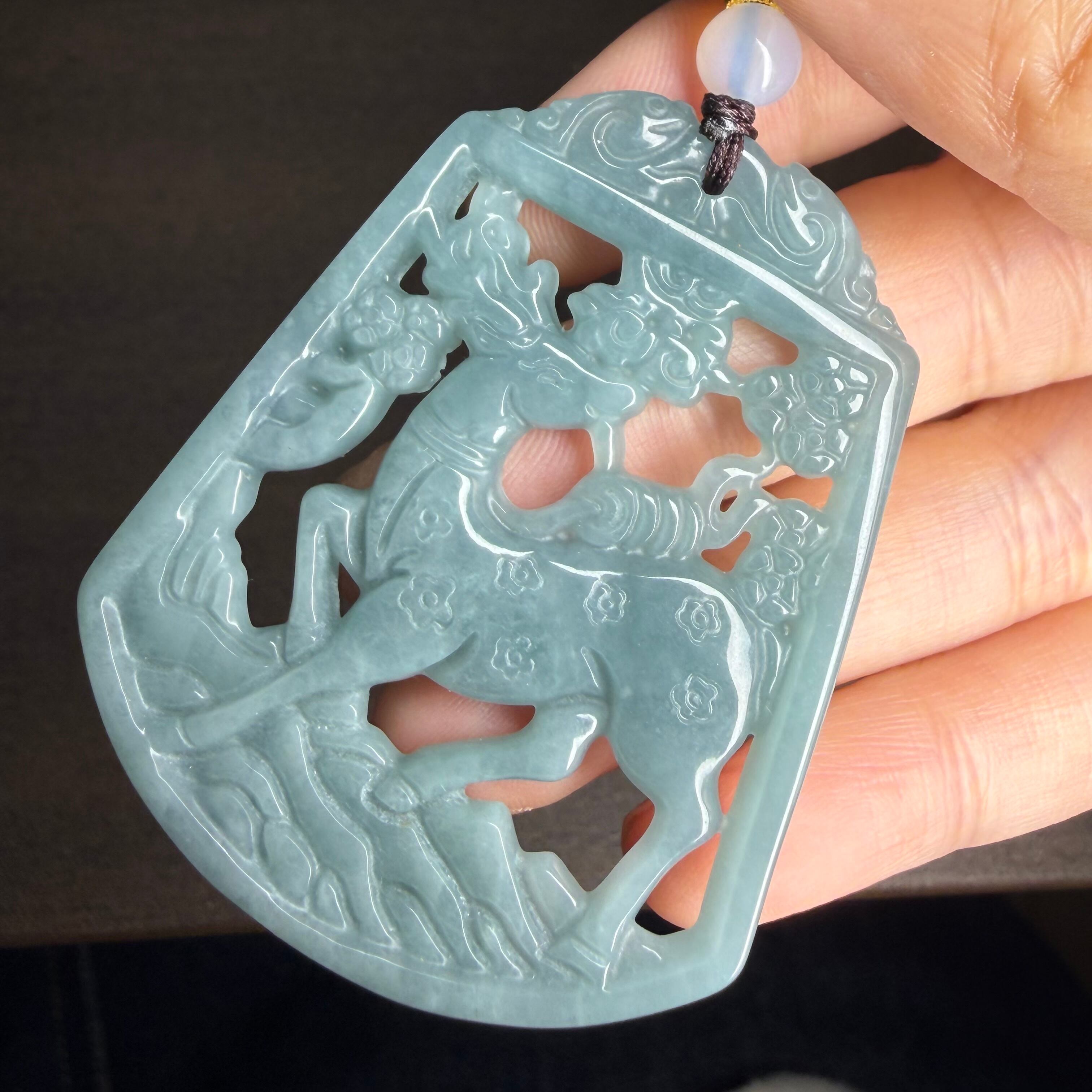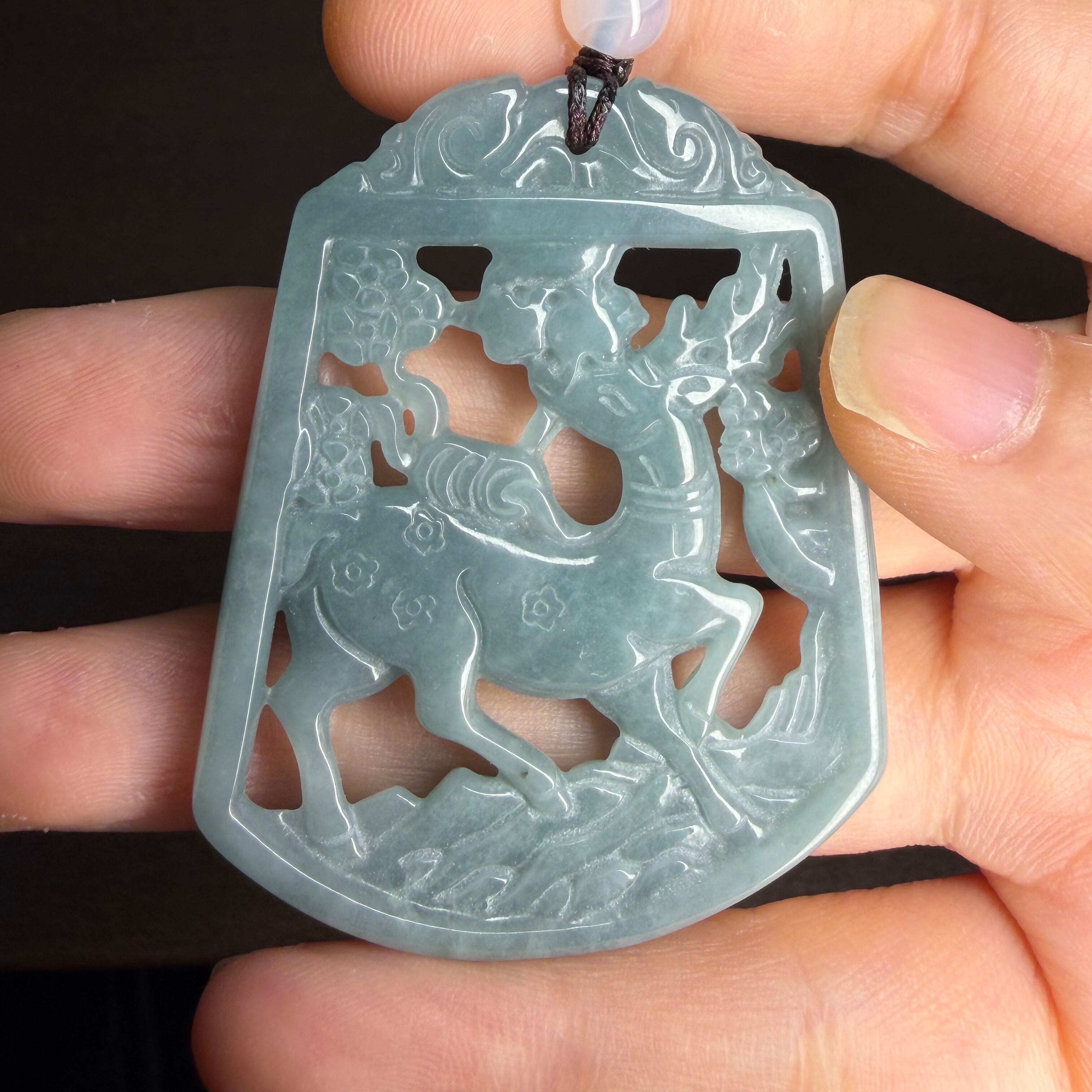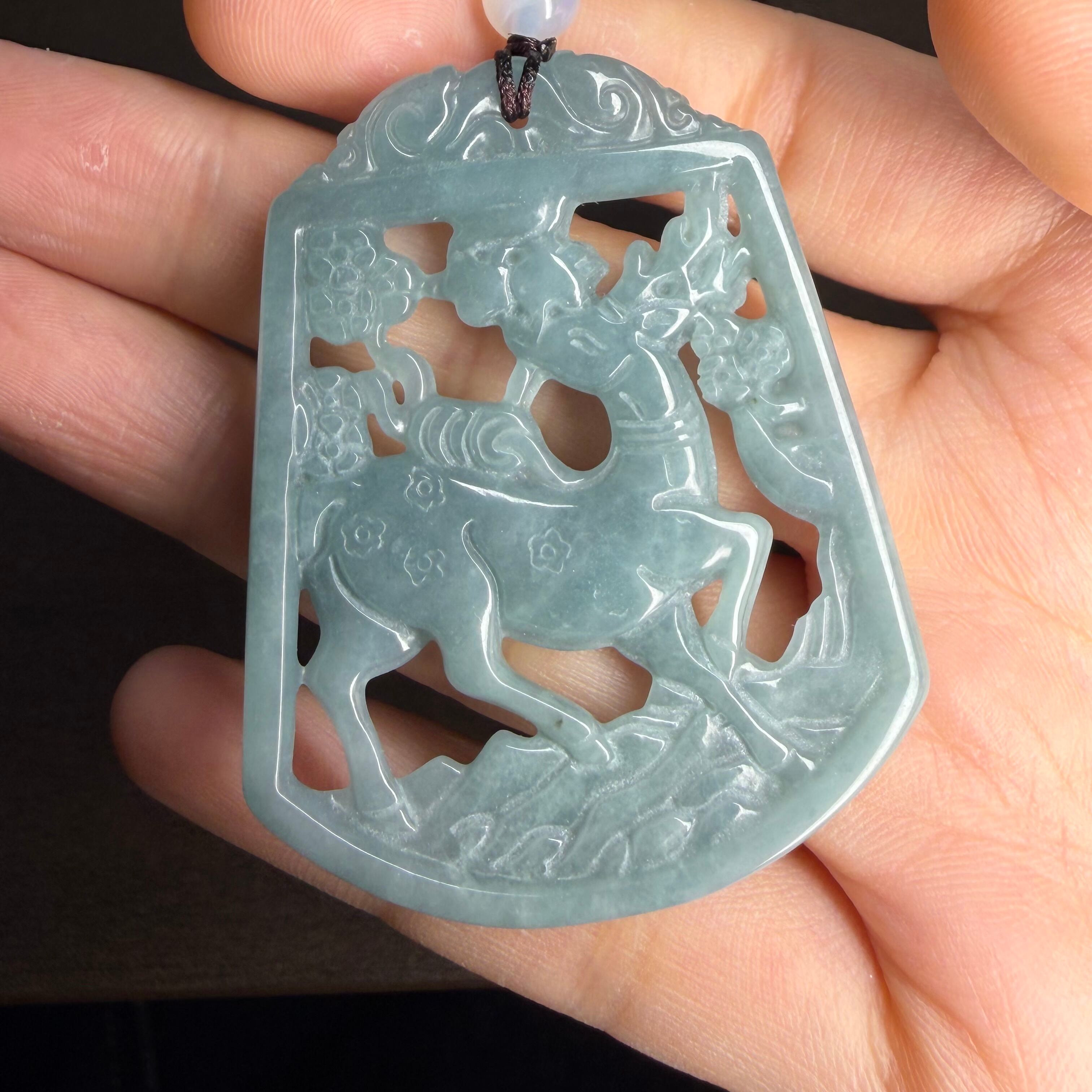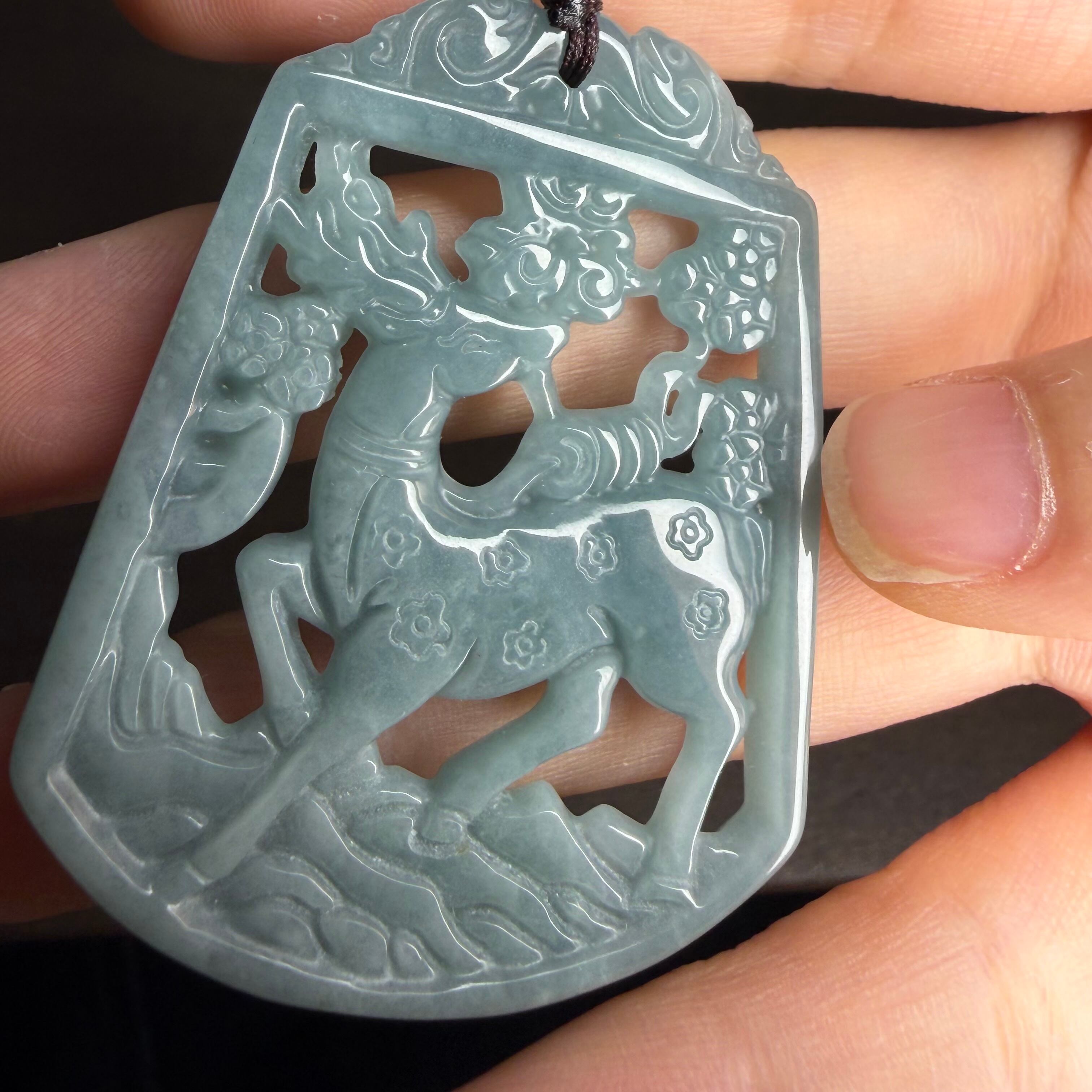 本翡翠 鹿の彫刻 ネックレス グァテマラ産 無含浸 無着色