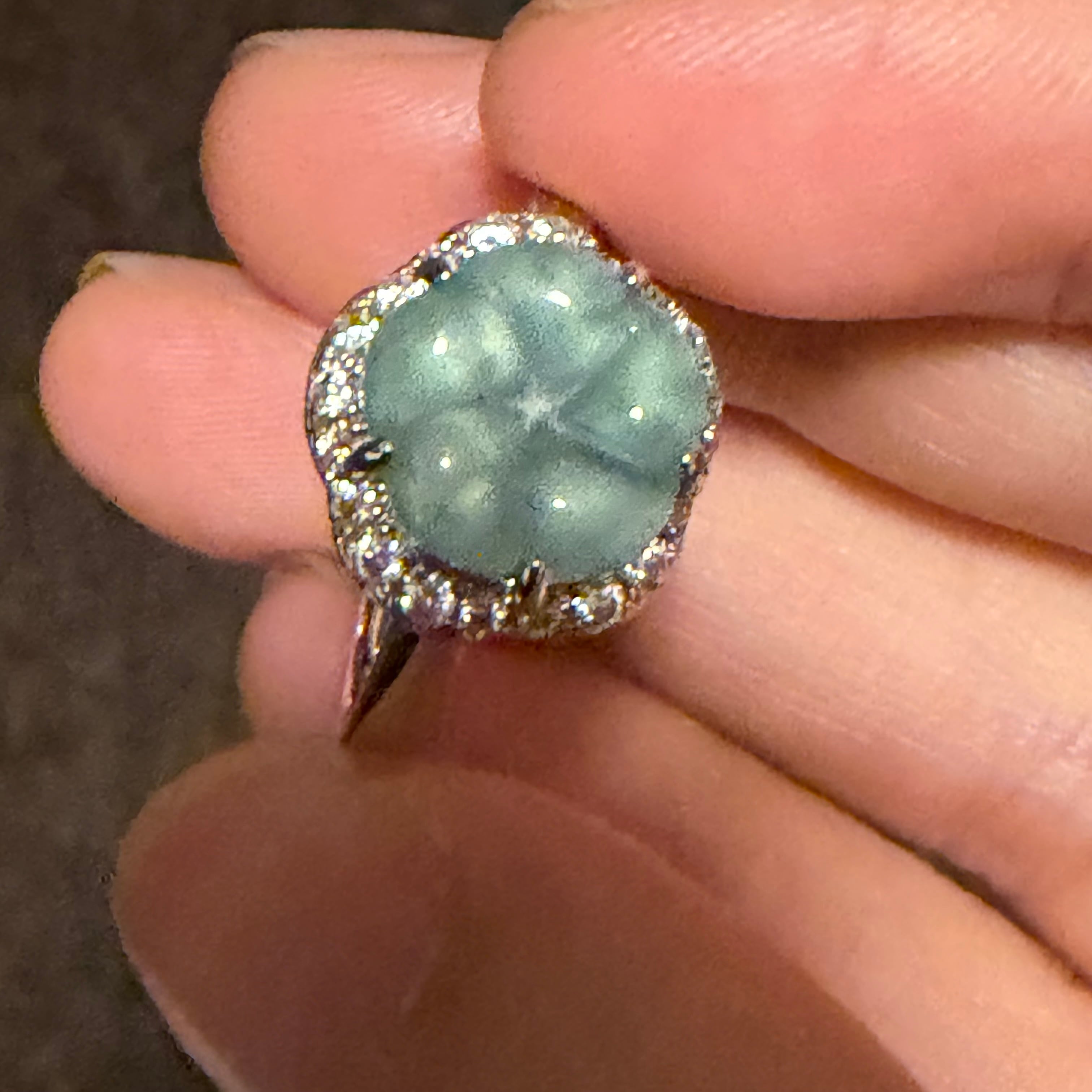 本翡翠指輪 小花 可愛い 氷種 お買い得 無含浸 無着色