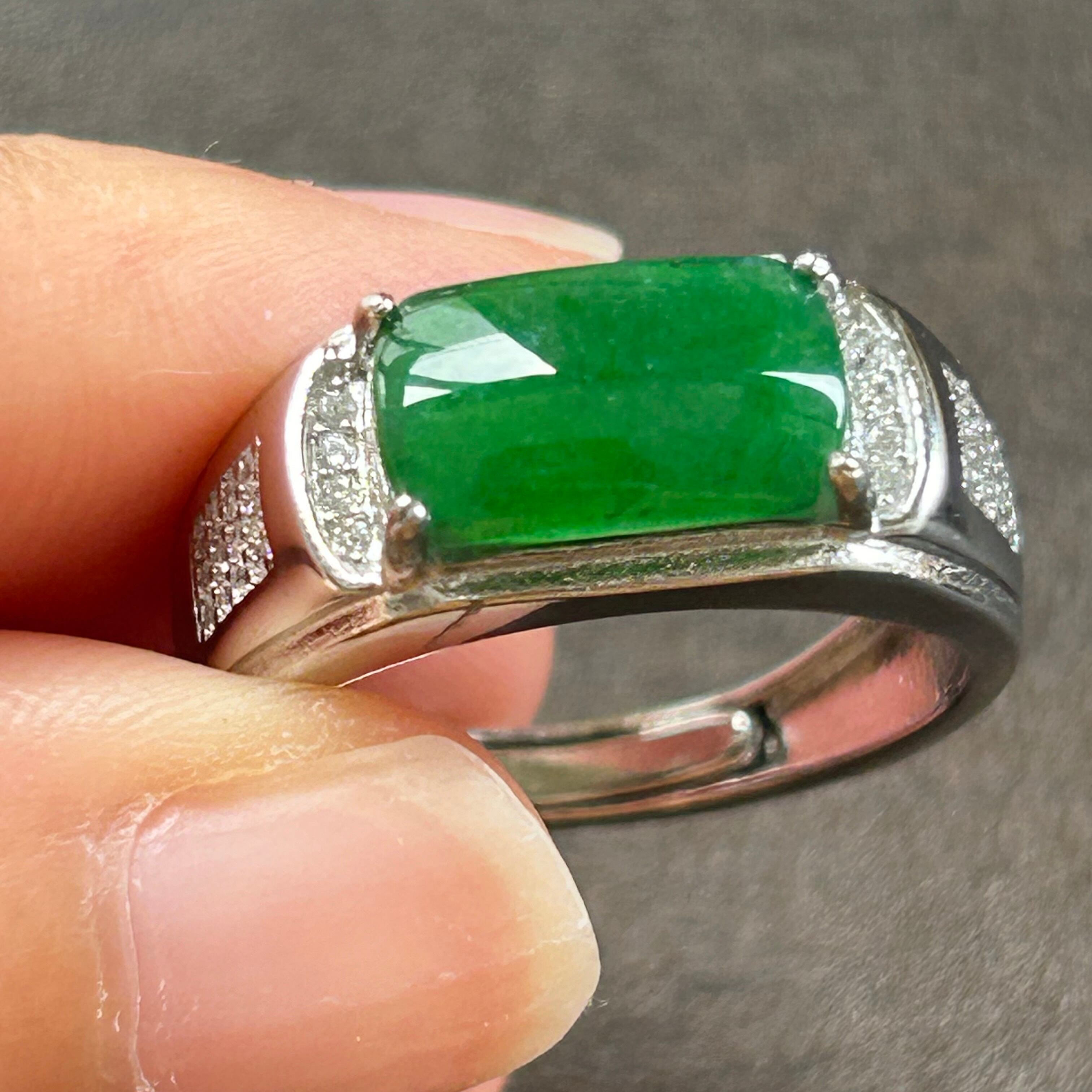 本翡翠指輪 男子用リング ロウカン ミャンマー産 超高級 一点物 合金