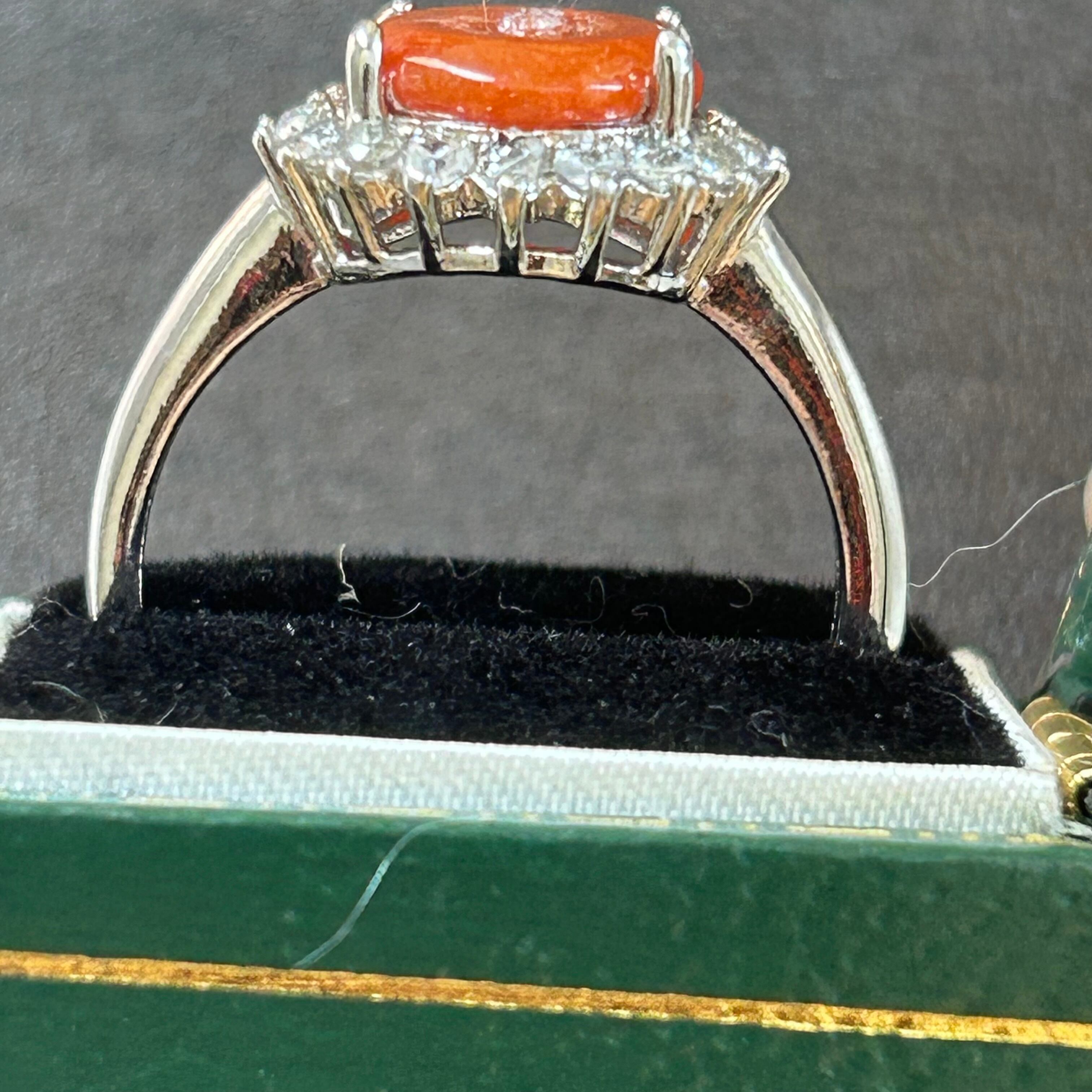 This unique jadeite ring features a stunning orange stone sourced from Myanmar.